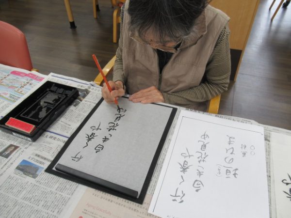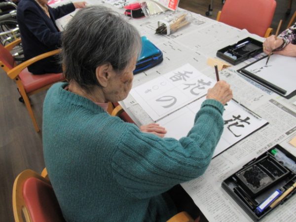 職員ブログ 書道教室 2024.04.24 Post Share Hatena こんにちは(^◇^) Mです。本日は、月に2回行っている 書道教室の日です。コロナ禍前からお世話になっているT先生に 4月からお越し頂いております。前にもブログでお話をしましたが、 T先生は、書道の先生に対して指導する先生です(笑) 生徒 < 書道の先生 < T先生 (*^_^*) とにかく凄い人です。 皆様、写真撮られていることにも気付かず真剣に 書道を楽しまれておりました。 え?私の作品も見てみたい? 残念ですが、習字は苦手でして・・・( ̄▽ ̄) ですが、皆様がそこまで言うのなら・・・考えます。 (´∀`*)ウフフ ]]> バスツアー 前の記事 超速報 次の記事