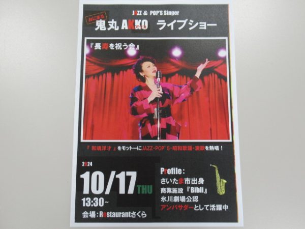 昨日、長寿を祝う会に鬼丸AKKOさんにお越し頂きました。